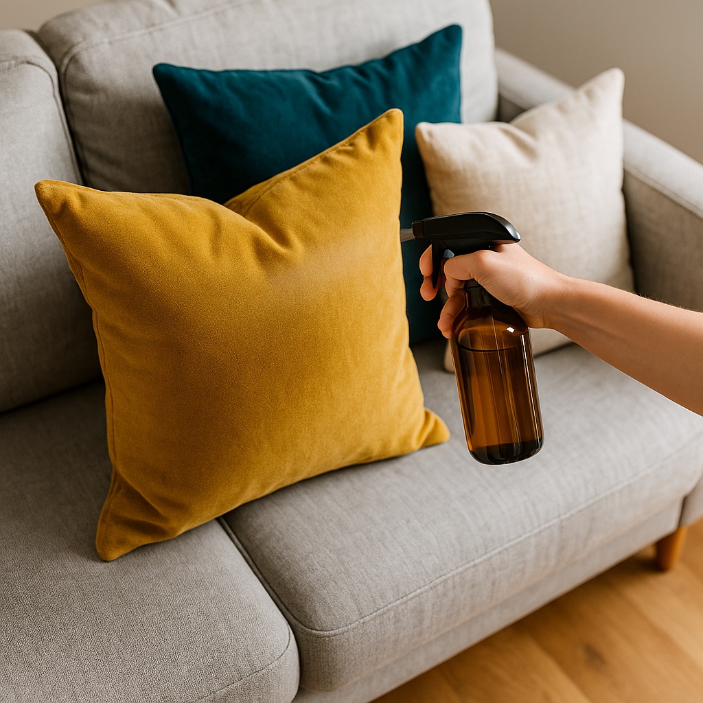 Závesy, čalúnenie pohoviek či dekoratívne prikrývky často absorbujú pachy z kuchyne alebo domácich zvierat. Nastriekanie malého množstva zriedeného parfému priamo na tkaninu okamžite osvieži miestnosť a dodá jej svieži charakter bez potreby prania.