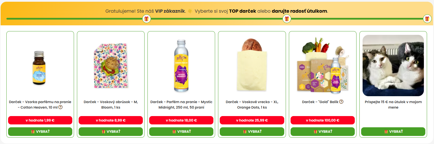 Stačí pridať produkty do košíka – odomknú sa ďalšie darčeky.